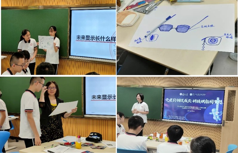 讲座后,乔老师带领大家开展“未来显示”主题讨论,请同学们自行设计制作“我眼中的未来显示器”。同学们发挥想象,积极展示小组成果,并分别评选出 “设计最好”、“绘画最好”、“演讲最好”的作品。获奖同学发表获奖感言,活动气氛达到高潮。